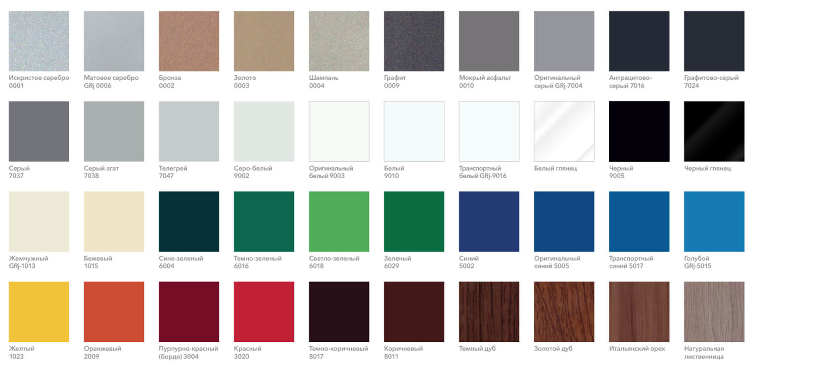 Каталог цветов для системы Akustiline T24