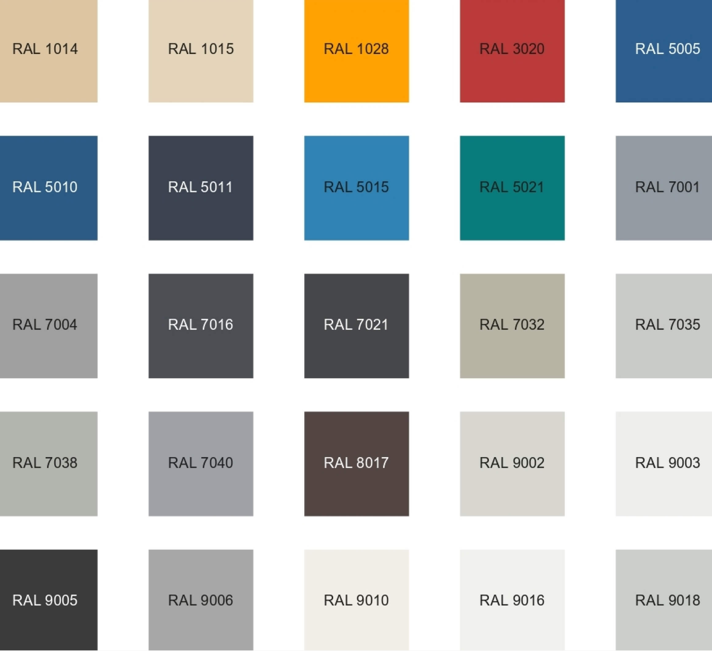 Стандартные цвета профиля Akustiline L TL U. По запросу возможно окрашивание в любой RAL из коллекции RAL Classic Возможно окрашивание в полуматовый цвет (30-50% глянца). Цвета на экране монитора могут отличаться от оригиналов из-за особенностей цветопередачи. Цвета RAL не имеют соответствий в системах: CMYK, Pantone, NCS, HTML или в RGB.