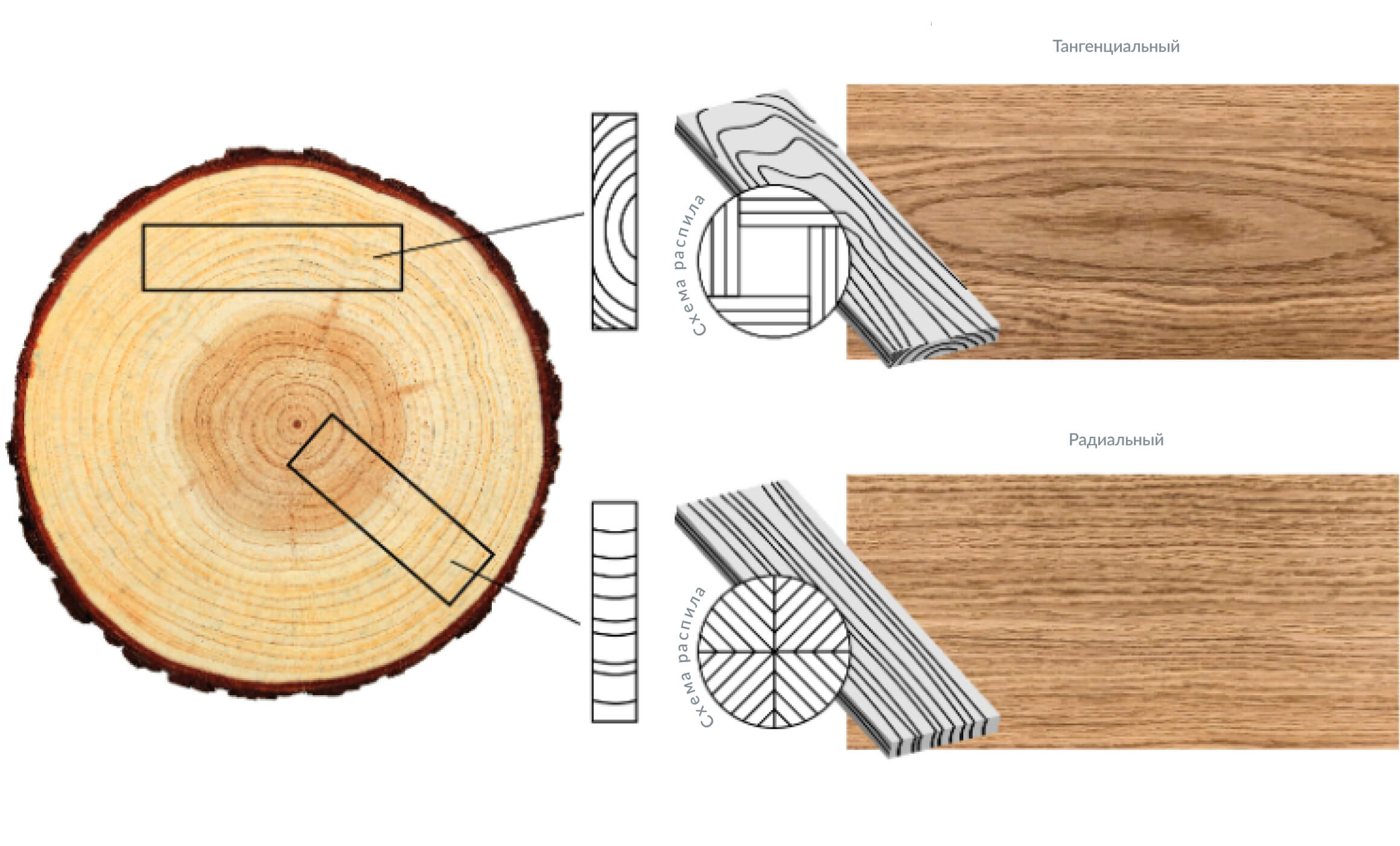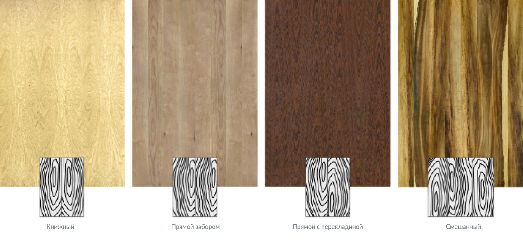 Виды сшивки "рубашек" шпона: Виды распила шпона: