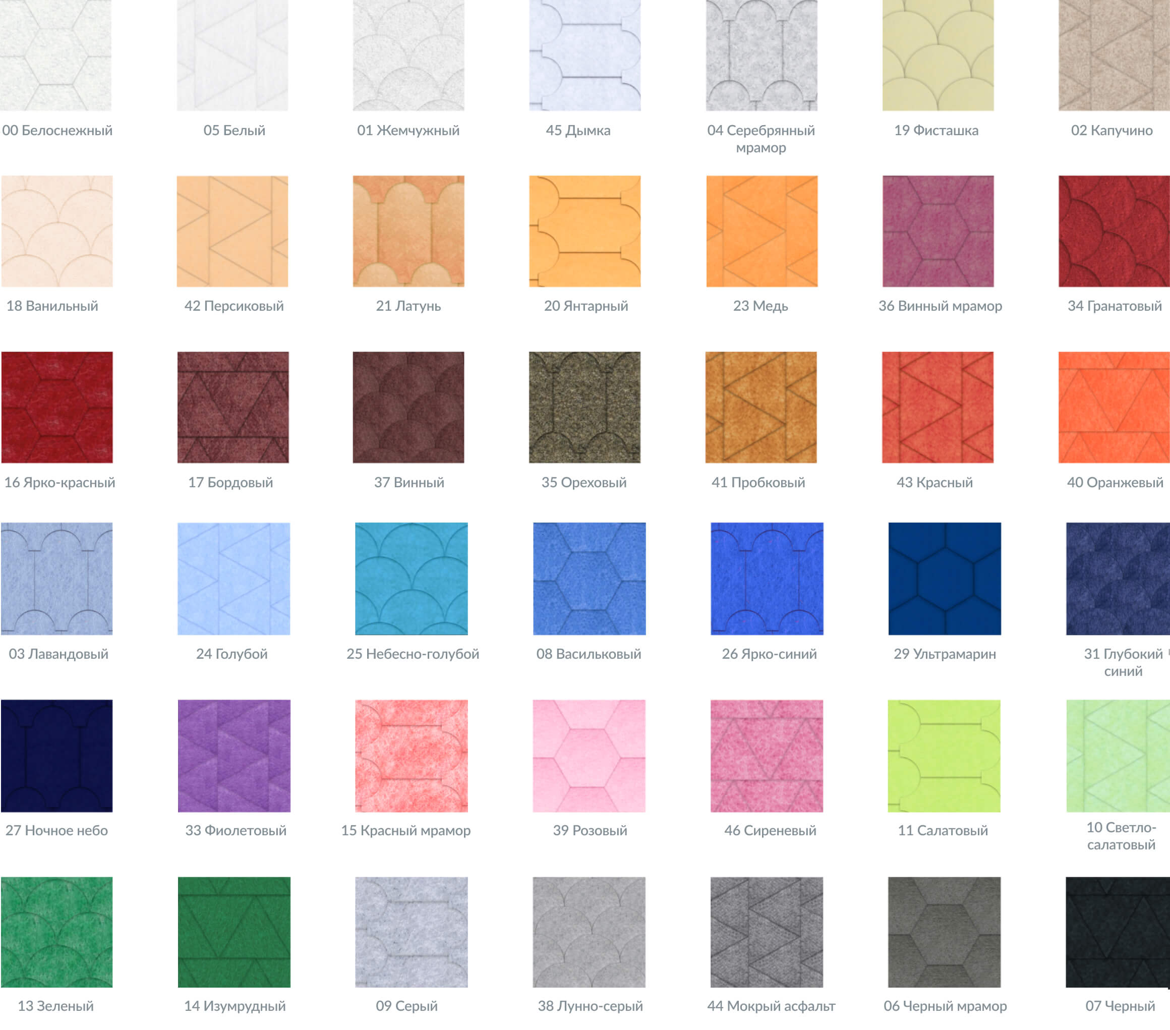 Синтетический войлок HOFTECH обладает широкой цветовой палитрой: На одноцветных панелях допускается наличие включений другого цвета не более 0,1% от площади панели.